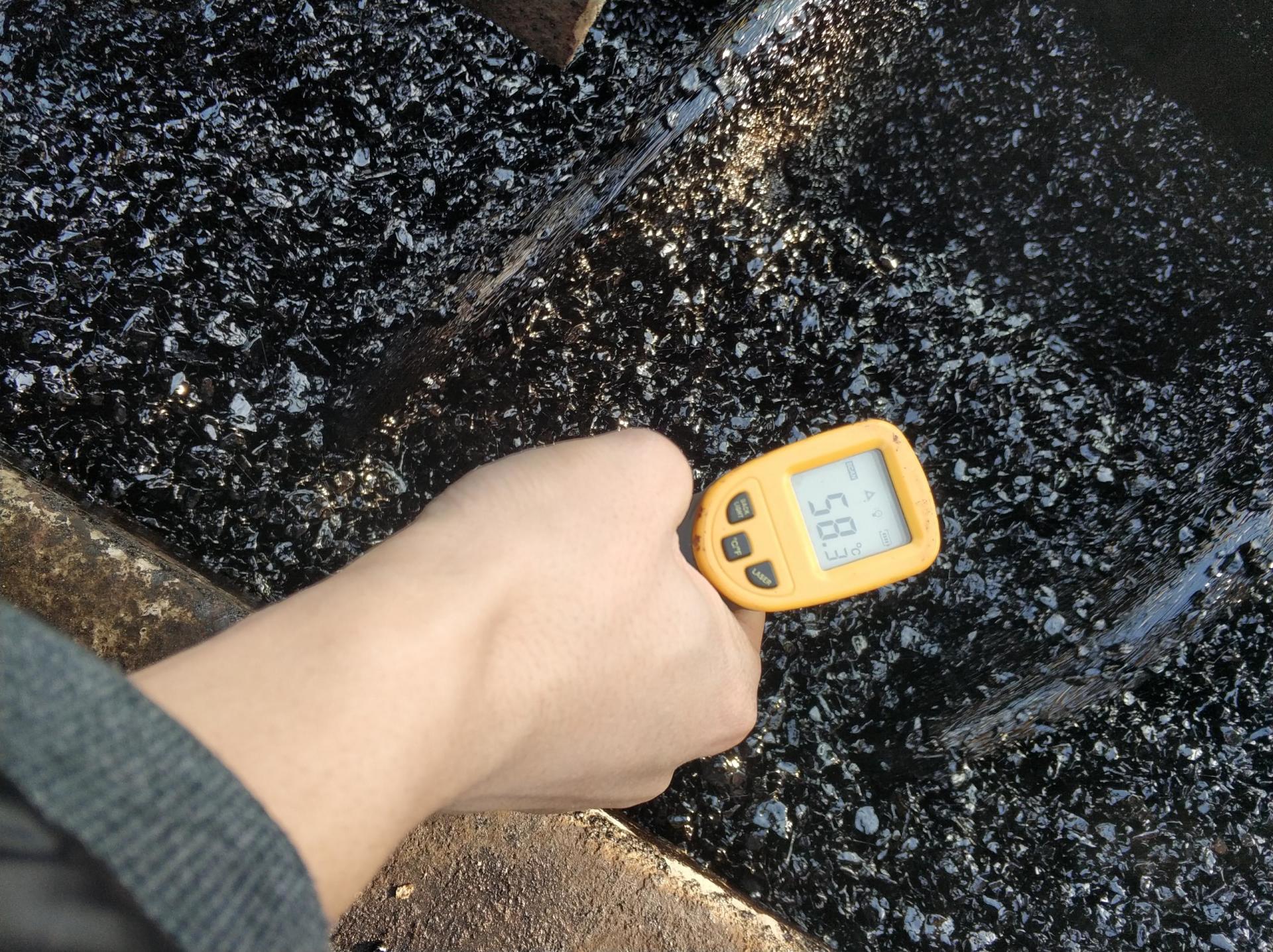 當(dāng)天施工時氣溫僅有3~5℃并伴有大風(fēng),普通熱拌瀝青已不允許施工。 但我公司新一代MAC冷拌瀝青混合料僅對石子稍微加熱,出料溫度50~60℃,完全滿足拌和、攤鋪、碾壓各工序?qū)Φ蜏睾鸵仔缘囊蟆?路面碾壓成型降至接近氣溫后即具有較高的強度,可立即開放交通。 采用的開級配混合料為骨架嵌擠結(jié)構(gòu),承載力高,不易變形,易于施工控制,節(jié)省石料和瀝青。 現(xiàn)場觀摩的交通局領(lǐng)導(dǎo)、外國專家和施工單位對MAC冷拌瀝青混合料的低溫施工性能和路面強度一致認(rèn)可,并給予較高評價。