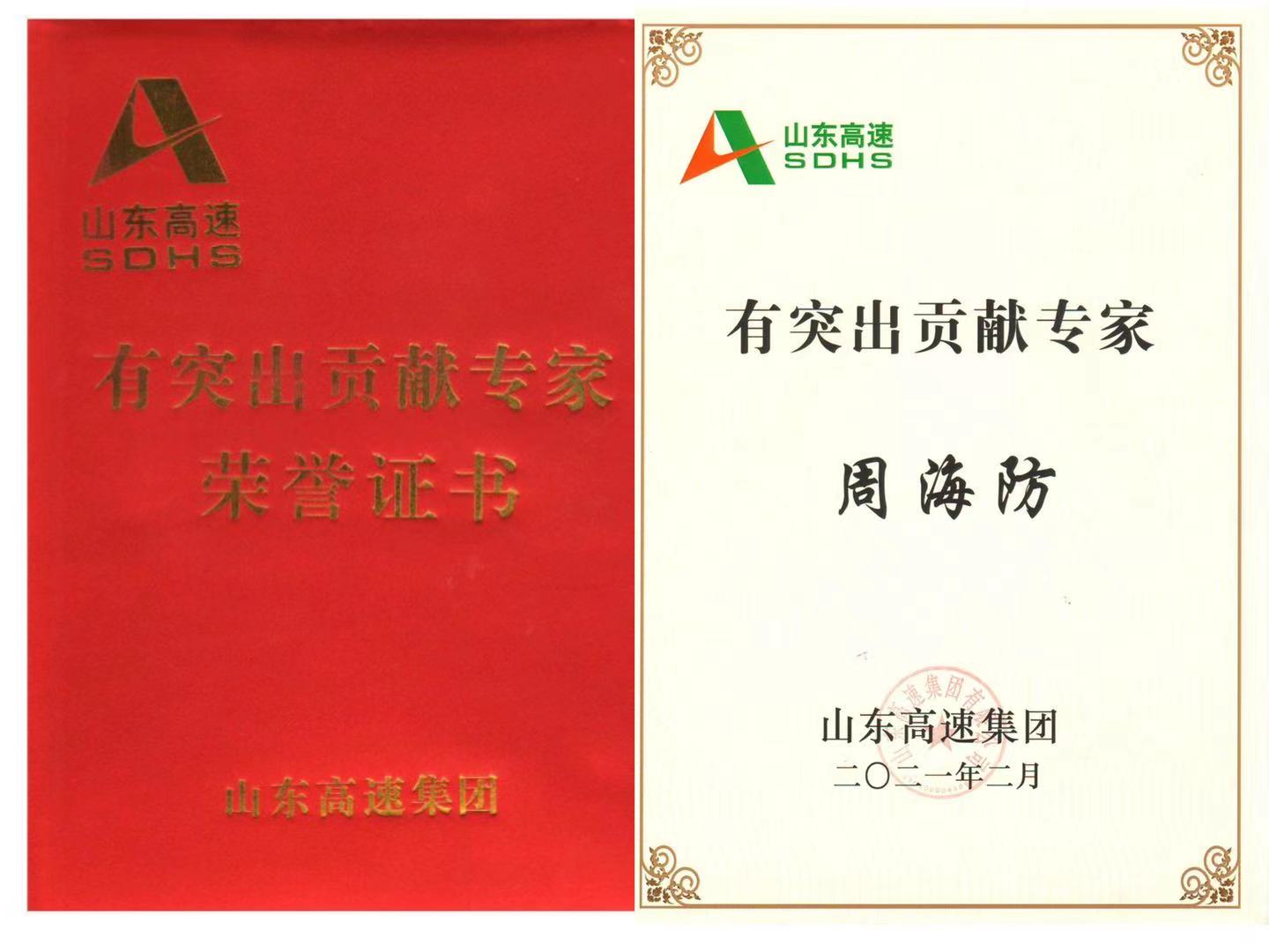 近日,在山東高速集團召開的一屆二次職工(會員)代表大會暨2021年度工作會議上,公司副總經(jīng)理周海防同志被授予2020年度“山東高速有突出貢獻專家”榮譽稱號。山東高速有突出貢獻專家是集團公司設(shè)立的專業(yè)技術(shù)人才專項榮譽,選拔對象是長期在專業(yè)技術(shù)崗位上工作,為集團公司發(fā)展做出突出貢獻的專業(yè)技術(shù)人才。