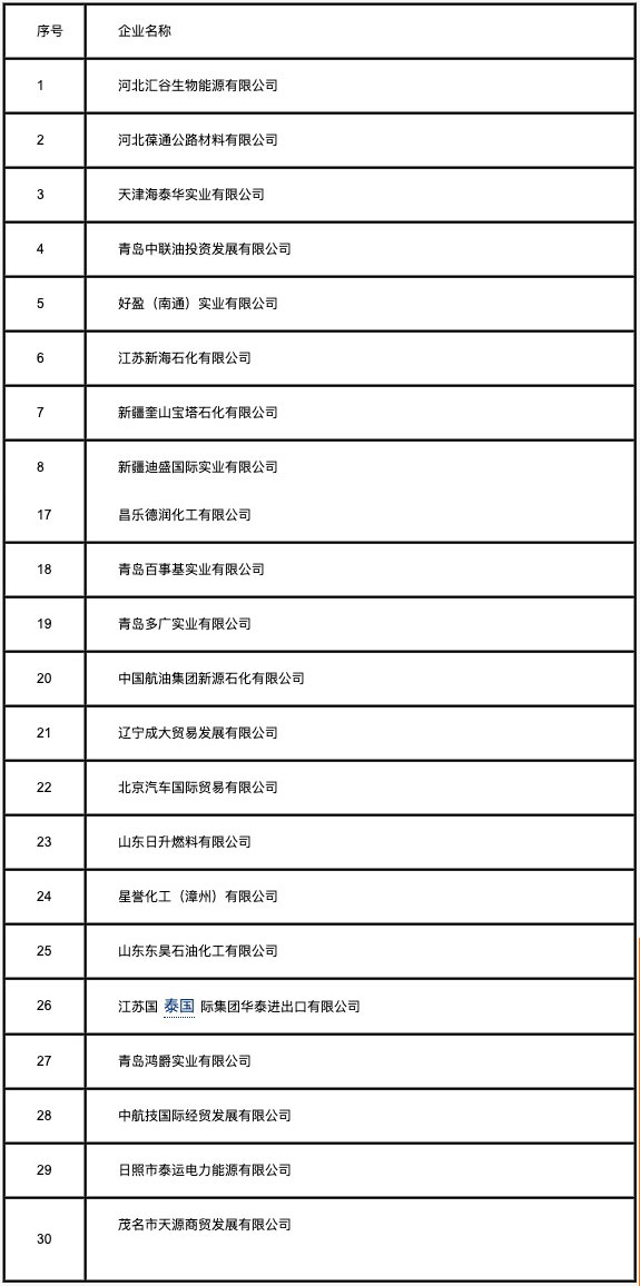 根據(jù)商務部2012年第66號公告《公布2013年燃料油非國營貿(mào)易進口允許量申領程序、分配原則》(以下簡稱《公告》)的要求,中國五礦化工進出口商會對新申請2013年第二批燃料油非國營貿(mào)易進口企業(yè)報送的材料進行審核,商務部外貿(mào)司對審核情況進行了復審。截止2013年3月31日,共有41家企業(yè)報送了申請材料,其中符合《公告》要求的有30家企業(yè),現(xiàn)將材料齊全企業(yè)名單進行公示,公示期為2013年4月19-25日。公示期間,對公示名單有異議的,可向商務部(外貿(mào)司)提請公示復核。同時公布材料不齊全企業(yè)名單及所缺材料,公示期間,各相關企業(yè)仍可將補充材料報送至商務部外貿(mào)司,同時抄送中國五礦化工進出口商會。